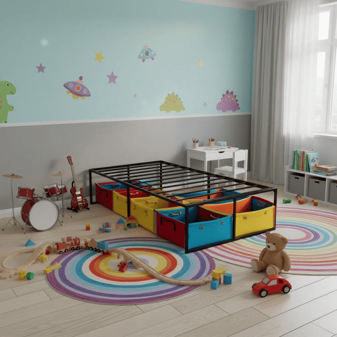 Espacio extra para guardar: ¿Necesitas más lugar? Diseñamos la base para que tengas 40 cms de espacio libre entre la base y el piso. Ideal para guardar esas cosas que siempre andan dando vueltas.